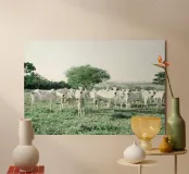 Mucche bianche in un campo verde plexiglass