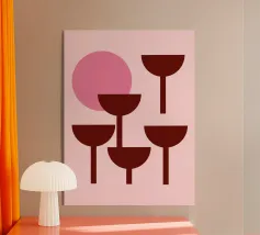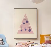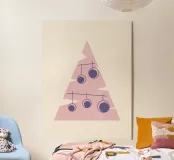 Albero di Natale dipinto in modo minimale con decorazioni semplici e stilizzate, bella illustrazione perfetta per un regalo di Natale o per la vostra decorazione interna natalizia. Natale non convenzionale nei toni del rosa.
