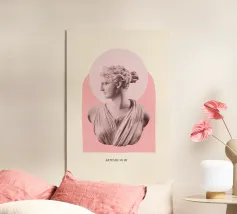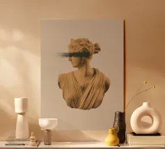 Un volto stilizzato ispirato ai busti antichi, attraversato da circuiti luminosi. Il passato incontra la tecnologia.