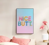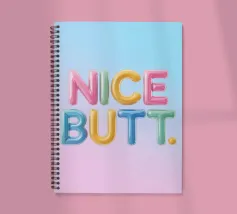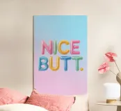 "Nice Butt" in lettere colorate e pastello con un aspetto giocoso e carino su uno sfondo semplice. Design umoristico e affascinante con uno stile estetico e una tipografia moderna.