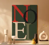 Volete rendere la vostra casa festosa ed elegante nel periodo natalizio e non vi piace il solito kitsch natalizio? Oppure siete alla ricerca di biglietti d'auguri insoliti da inviare e regalare ai vostri cari? Allora siete nel posto giusto! Utilizzate i nostri design moderni nel formato giusto e date un aspetto personalizzato alle vostre decorazioni e ai vostri regali di Natale. La scritta NOEL, minimalista e a caratteri cubitali, si abbina perfettamente a decorazioni natalizie semplici e irradia un'atmosfera festosa con i suoi toni verdi e rossi.