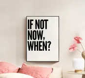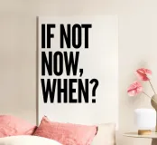 "La domanda "NON ORA, QUANDO?" è impilata in tre righe, resa in un carattere grassetto e sans-serif con una forte enfasi su ogni parola, su uno sfondo bianco pulito, che trasmette un senso di urgenza e motivazione",