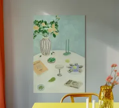 Isabelle is a Belgian artist based in Portugal. She draws inspiration from the quiet rhythm of daily life. The way light falls gently across a room, the warmth of familiar interiors, or the elegance of simple objects arranged in space. A walk through the fisherman’s town where she lives often sparks new ideas: people sunbathing, friends playing cards, and the details of everyday interiors all become sources of reflection and creation. In her studio, she reflects on these fleeting details and transforms them into compositions that honor stillness, memory, and presence. When she is not painting, she enjoys running, surfing, visiting flea markets, and exploring new places. These experiences, along with the small moments that linger in memory, weave their way into her work, creating pieces that invite others to slow down and connect with the gentle beauty of life.