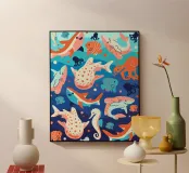 Immerse yourself in the serene beauty of the ocean with 'Ocean Wonders.' This vibrant print captures the captivating blues of the sea and the colorful world of underwater life.