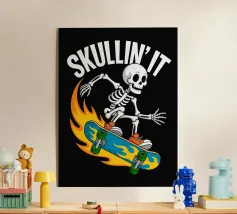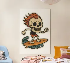 Scatenatevi sul surf con questo fantastico skeleton rider! Questo disegno raffigura uno scheletro che sfreccia con stile su un'onda colorata. È un mix perfetto di cultura balneare e un tocco di macabro. Prendete questo design radicale per la vostra prossima avventura in spiaggia (o semplicemente per avere un aspetto cool).