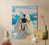Orso polare che tiene la macchina fotografica con pittura fauvismo stile arte