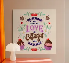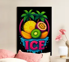 Una citazione divertente con tanta frutta disegnata a mano per la cucina o la zona pranzo. Pace, amore e yogurt gelato. Un motivo tipografico davvero unico. Le lettere sono disegnate a mano e colorate con i freschi e rinfrescanti colori del gelato. La cornice è formata da frutti come mirtilli, kiwi, fragole, mango, lamponi e fiori di vaniglia. È anche un disegno molto bello e adatto per un dolce caffè, per una gelateria, per un grazioso bistrot o ristorante.