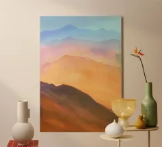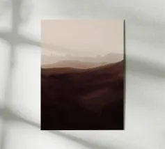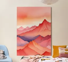 La silhouette di una catena montuosa si staglia su un cielo rosso e arancione, creando un contrasto sorprendente. I toni verdi e neri delle montagne suggeriscono una scena suggestiva al crepuscolo o all'alba.