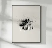 Schizzi di vernice con forme e linee in bianco e nero su uno sfondo beige