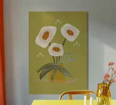 Create un'atmosfera invitante e accogliente con "Papaveri di terra - Fiori rustici Boho". Questa affascinante illustrazione botanica presenta fiori di papavero dalle tonalità terrose di terracotta, ocra e rosa polveroso, disposti con cura in un vaso rustico a fantasia. Mescolando il calore bohémien con lo stile moderno di metà secolo, quest'opera d'arte dona un tocco di eleganza naturale e di fascino contemporaneo a qualsiasi ambiente, perfetto per interni eclettici di ispirazione bohémien o per pareti di gallerie moderne.