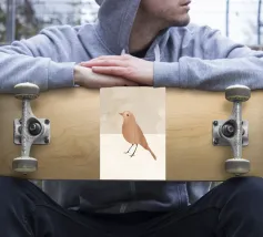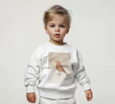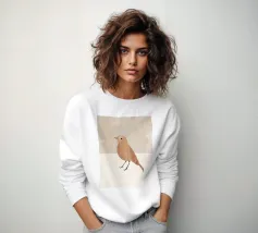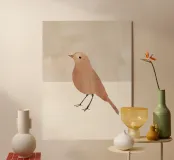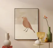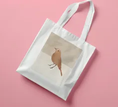 A minimalist illustration of a sparrow, created with soft tones and simple shapes.