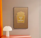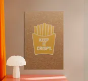 Patatine fritte dorate con "KEEP IT CRISPY plexiglass