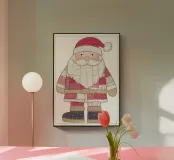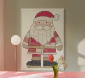 Questo incantevole poster digitale presenta un ritratto a figura intera di un Babbo Natale classico e semplificato. L'immagine è resa brillantemente in uno stile tessile patchwork e trapuntato unico, con il cappotto, il cappello e la barba composti da strisce di tessuto simulato (a quadri, a righe, a tinta unita) e cuciture visibili. Questa estetica rustica e folkloristica utilizza una tavolozza calda e tenue di rossi, creme e marroni, che evoca un'atmosfera di vacanza accogliente e artigianale. Un delicato bordo a catena incornicia l'affascinante figura. Questo pezzo è perfetto per aggiungere un calore tradizionale e casalingo al vostro arredamento natalizio. Riceverete un'eccezione