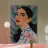 This artwork shows a person wearing a shirt with a geometric pattern, set against a background of green leaves. The focus is on the intricate design of the shirt and the natural elements surrounding it.