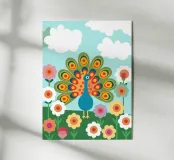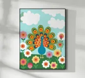This meticulously crafted piece showcases a vibrant peacock feather in stunning detail, capturing the iridescent beauty and intricate patterns of nature's masterpiece.