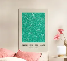 Questo poster combina un motivo di nuvole di ispirazione tradizionale con una moderna combinazione di colori corallo - morbidi, caldi e positivi. Il messaggio "Think Less. Feel More - Mindful Bliss" completa il disegno per creare un quadro d'insieme armonioso per ambienti pieni di leggerezza. Ideale per camere da letto, spazi abitativi luminosi o oasi creative che intendono irradiare gioia e consapevolezza.