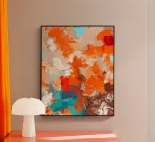 Piacere caldo pittura astratta rosso arancio marrone estate pennellate ruvide verde acqua