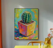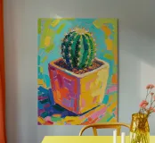 Piccolo cactus in vaso a forma di cubo con pittura fauvismo stile arte