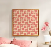 Giocoso e nostalgico, questo motivo floreale rosa retrò fa rivivere lo spirito degli anni '60 con un tocco moderno. I fiori geometrici in tonalità rosa tenui ma decise creano un look armonioso e vivace, accogliente ed elegante al tempo stesso. Perfetto per interni eclettici, dormitori e arredamento moderno di metà secolo con una personalità vibrante.