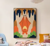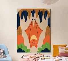 Godetevi una rilassante illustrazione vettoriale con un pipistrello che riposa all'interno di una grotta.