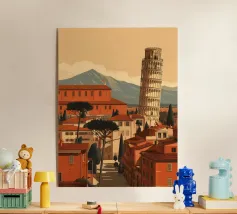 Minimalist Italy travel design with the famous leaning tower of Pisa. Typical Italian motif. Decorative gift idea for anyone who loves travelling to Pisa and Italy in general.