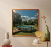 Piscina fuori terra con scala e terrazza in cortile plexiglass