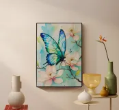 Pittura digitale di farfalla blu e fiori di magnolia plexiglass