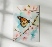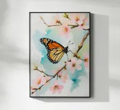 Pittura digitale di farfalla monarca e fiori di ciliegio plexiglass
