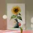 Pittura digitale minimalista di un girasole in un vaso plexiglass