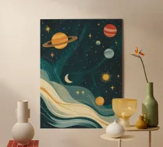 Stunning and detailed planet illustrations, featuring surface textures and color gradations.