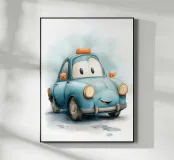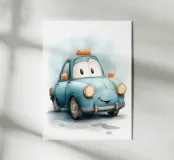 Aggiungete un tocco di allegria e divertimento alla cameretta del vostro bambino con questo bellissimo poster che raffigura un'auto blu con un sorriso malizioso. Illustrato in morbidi toni acquerellati, questo poster da parete è ideale per stimolare l'immaginazione e creare un'atmosfera giocosa. Perfetto per i piccoli appassionati di auto, porta colore, divertimento e originalità nella cameretta di un bambino o di una bambina. Una decorazione tenera che evoca avventura e buon umore.