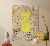 Questo collage è stato realizzato a partire da vecchi giornali con la stampa linoleografica. Caffè appena fatto e siamo pronti a conquistare la giornata,