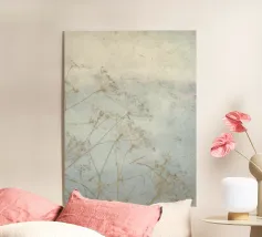 Fine structures, delicate flowers and fragile blades of grass run like filigree veins through the picture, creating a calming yet deeply moving scene. The dominant beige tones lend the work a restrained elegance and invite the viewer to discover the beauty in simplicity. This minimalist composition whispers softly of the transience of nature and the subtle yet powerful beauty that lies hidden in every moment of life.
