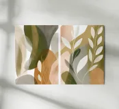 Un dittico di forme di foglie traslucide e strati organici: pura eleganza! I toni morbidi dell'oliva, del beige e del grigio si sovrappongono come carta velina traslucida e creano profondità spaziale. Ispirato a Georgia O'Keeffe, il risultato è un equilibrio meditativo tra natura e astrazione. Le transizioni nebbiose e le foglie bianche stilizzate conferiscono all'opera una raffinatezza senza tempo. Una composizione armoniosa sulla leggerezza, la trasparenza e la sottile bellezza del mondo vegetale: rilassante, elegante, senza tempo. Perfetta per ambienti che combinano la tranquillità naturale con il design moderno.