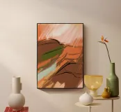 An expressive abstract piece capturing the moment of first light breaking over the horizon. The painting features vibrant strokes and a rich palette of sienna, terracotta, and warm ochre, evoking the powerful, emerging energy of a new day.