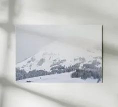 Un incontro intimo e immenso con la montagna. Questa fotografia potente e minimalista astrae il paesaggio, concentrandosi sulla consistenza grezza e primordiale di una parete rocciosa innevata. Ogni crepa e fessura racconta una storia di tempi geologici antichi, creando un arazzo mozzafiato di pietra e ghiaccio. La tavolozza monocromatica ne esalta la bellezza cruda e tattile. Un pezzo audace e contemplativo che celebra la potenza elementare e i dettagli intricati della natura, conferendo alla parete una presenza monumentale e radicata.