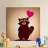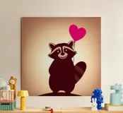 Procione con un palloncino a forma di cuore in piedi con gioia plexiglass