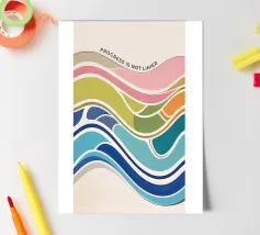 An abstract wave composition symbolizing growth, setbacks, and momentum. Soft pastel colors flow organically, reflecting the reality that progress moves in curves, not straight lines. A calm yet powerful visual reminder to trust the process, embrace change, and keep moving forward at your own pace.
