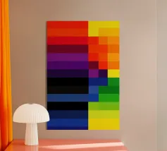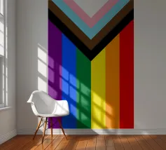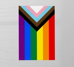 Rappresentazione suggestiva e simbolica della bandiera del Progress Pride, questo disegno fonde il tradizionale arcobaleno con l'aggiunta di strisce che rappresentano le comunità trans, nere e brune.