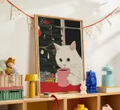 Questo è vino caldo? Gatto bianco e vino in tazza da caffè | Natale plexiglass