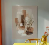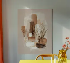 Una composizione astratta dai toni neutri caldi con forme organiche e architettoniche. Quest'opera d'arte conferisce equilibrio, profondità e sobria eleganza agli spazi contemporanei.