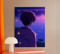 Ragazzo nella foresta in una notte di pioggia Lofi Art plexiglass