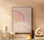 Brighten your space with Rainbow Cloud. Colours: Soft pinks, peach, cream, and warm neutrals. Perfect for nurseries, bedrooms and cozy reading nooks
