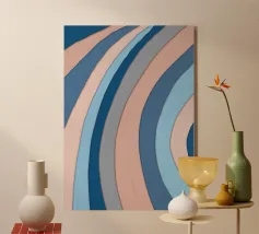 Questa delicata illustrazione mostra un arcobaleno in colori pastello con morbide sfumature di colore dall'azzurro al rosa, al giallo pastello e al verde chiaro. Le linee geometriche e le strisce strutturate danno un tocco moderno all'opera grafica e riflettono la natura. Un gioco armonioso di colori che irradia calma e gioia.