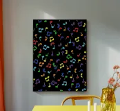 Rainbow Notes is a lively, cheerful design featuring colourful musical notes on a deep black background. The strong contrast makes the bright colours appear particularly intense and gives the motif a modern, expressive dynamism. Ideal for music lovers.