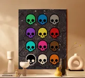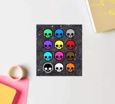 Questo disegno di teschi è colorato e spettrale, semplice ma d'effetto. Il meglio è che questo disegno è disponibile ora tramite il negozio Melty Shirts e può essere trovato su una serie di prodotti tra cui adesivi con teschi colorati, magliette con teschi arcobaleno, felpe con cappuccio con teschi dai colori vivaci e molto altro ancora!