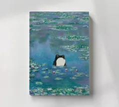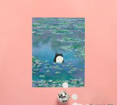 Rana non impressionata in un quadro di ninfee di Monet plexiglass