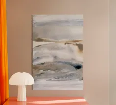 Le sfumature di oliva, umbro e nero confluiscono l'una nell'altra, evocando gli aghi di pino e le trame del suolo della foresta. La stratificazione organica e gli schizzi simili all'inchiostro creano un'astrazione lunatica che cattura l'atmosfera della terra umida e dell'ombra del bosco.