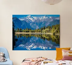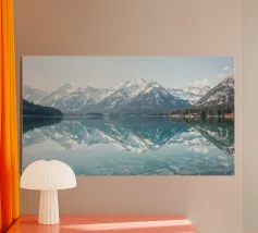 Riflesso stupefacente di montagne innevate in un ambiente tranquillo. plexiglass