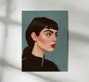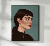 Il ritratto intenso e suggestivo di una donna con capelli scuri, occhi penetranti e un audace rossetto rosso รจ reso in uno stile pulito, moderno e realistico, che cattura uno sguardo di tranquilla forza e sicurezza.